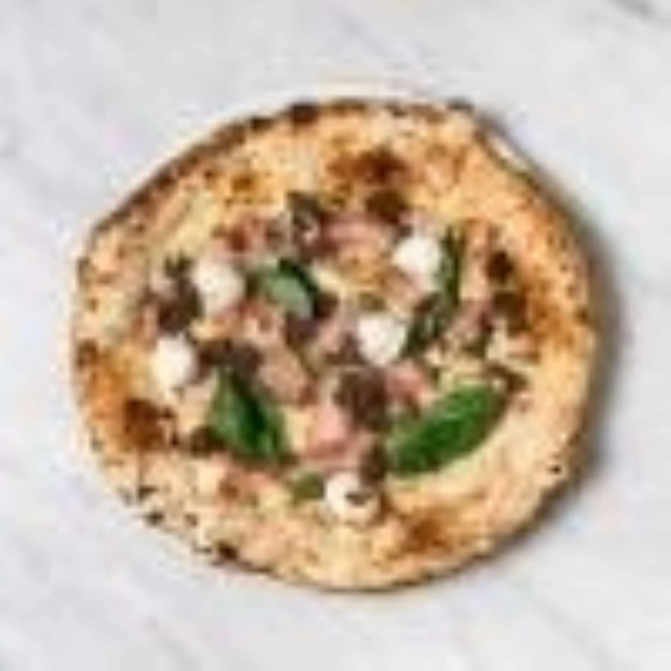 Solania San Marzano, Fior Di Latte, Buffalo Ricotta, Ham, Mild Neapolitan Salami, Pepper, Basil, EVOO
